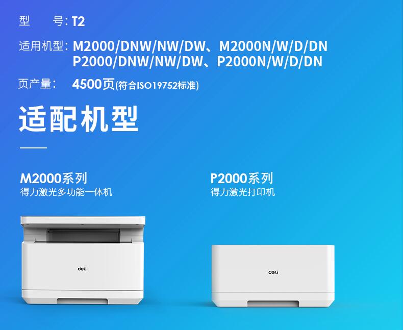 得力T2硒鼓墨盒碳粉M2000DW原裝M2000DNW M2000N NW P2000D P2000W 2000DN激光復印機打印機粉盒通用易加粉